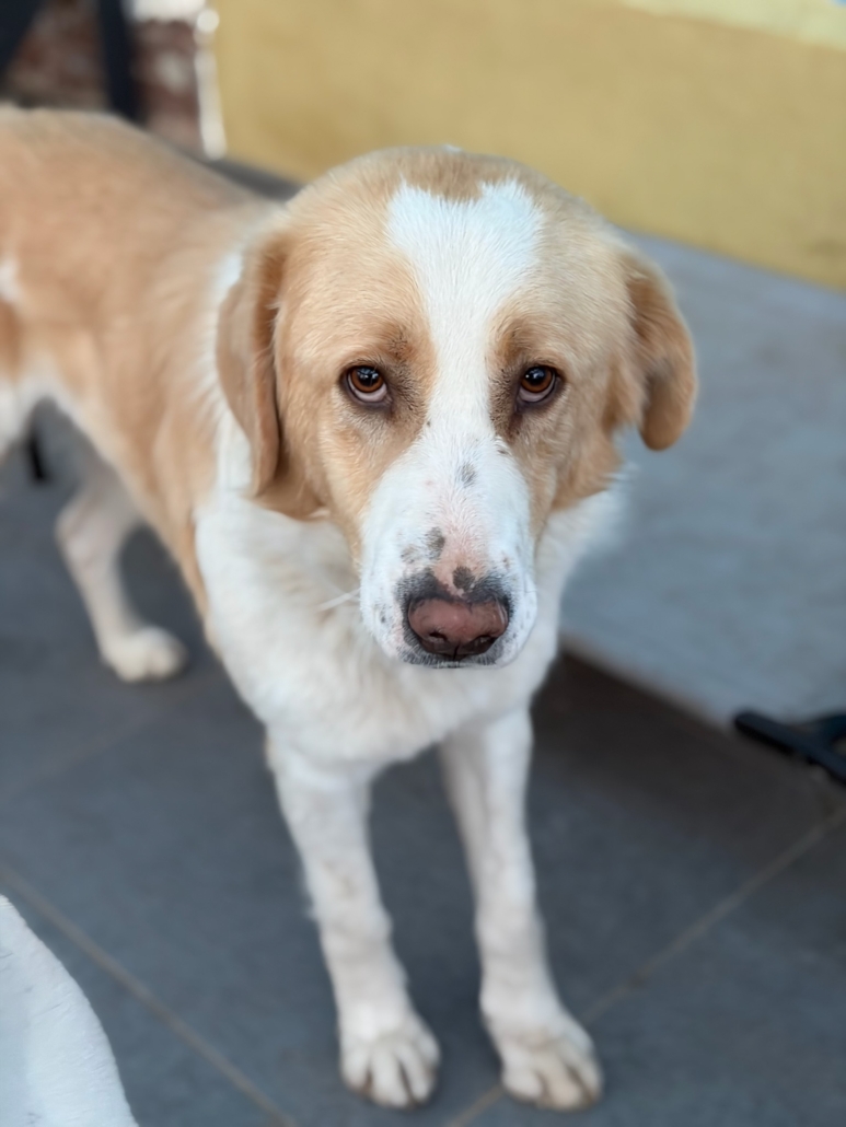 Bis vor Kurzem lebte Jack noch im öffentlichen Tierheim in Ioannina. Schwer verletzt wurde er dort Ende letzten Jahres aufgenommen, nachdem ihn ein betrunkener Mann beinahe umgebracht hatte. Bis dahin hatte Jack in einem nahegelegenen Dorf gelebt, wo ihn viele Anwohner sehr mochten – kein Wunder, denn er ist eine ausgesprochen sanfte und liebenswerte Hundeseele. Trotzdem griff der Mann zum Gewehr und traf Jack am Vorderbein und im Gesicht. Zum Glück wurden keine lebenswichtigen Organe verletzt und Jack überlebte. Zeitweise sah es jedoch so aus, als müsse sein Bein aufgrund der schweren Verletzung amputiert werden. Der behandelnde Tierarzt entschied sich glücklicherweise dafür, zunächst abzuwarten und auf eine mögliche Besserung zu hoffen – mit Erfolg: Seit Kurzem kann Jack wieder auftreten und nach aktuellem Stand kann ihm sein Bein erhalten bleiben. Noch humpelt er etwas, doch insgesamt kommt er sichtbar gut zurecht.