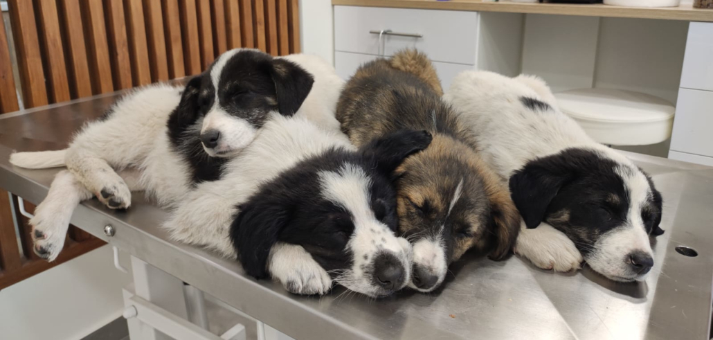 Eigentlich sollte es von da an nur noch bergauf gehen. Doch das Schicksal hatte andere Pläne: Alle vier Welpen erkrankten an Parvo und wir bangten um ihr Leben. Mit unglaublicher Stärke kämpften sie sich zurück. Kaum überstanden, folgte der nächste Schock – Zwingerhusten. Aber auch dieses Hindernis meisterten sie glücklicherweise unbeschadet.