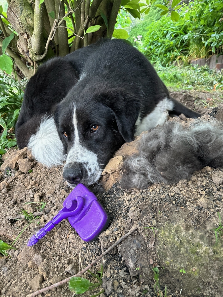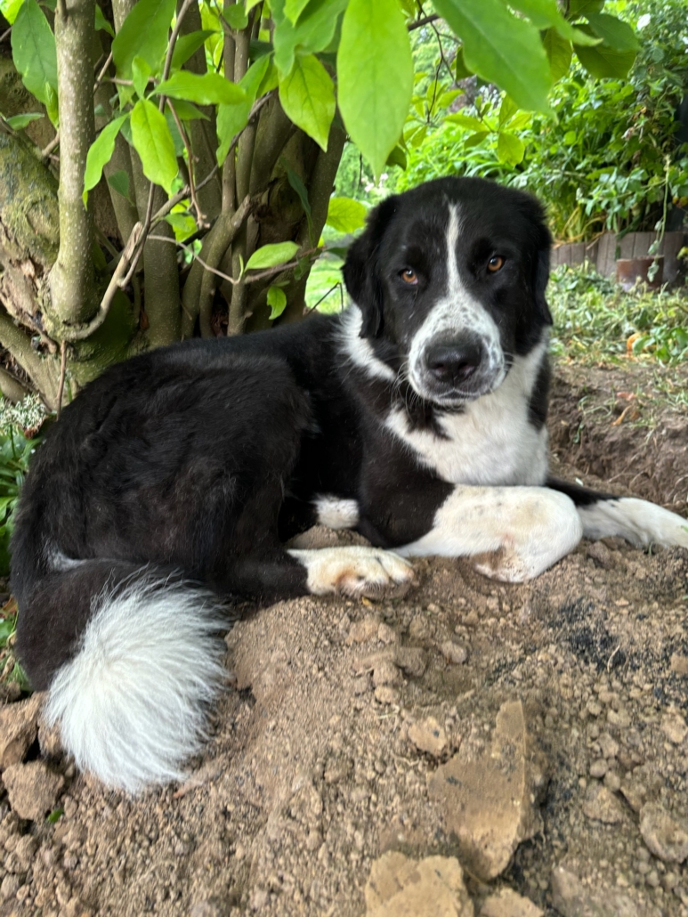 Wer Baz erlebt, merkt sofort, dass dieser Hund Menschen liebt. Egal ob alte Bekannte oder neue Gesichter, Baz freut sich über jeden Besuch und ist gefühlt bei jedem Projekt auf dem Hof dabei. Mit seiner imposanten Erscheinung macht er zunächst großen Eindruck, aber dahinter steckt ein wahrhaft verschmuster und anhänglicher Kerl. Am liebsten würde er den ganzen Tag neben einem der Betreuer vor Ort im Gras liegen, lange Kuschelstunden genießen und hin und wieder ausgiebig gebürstet werden.