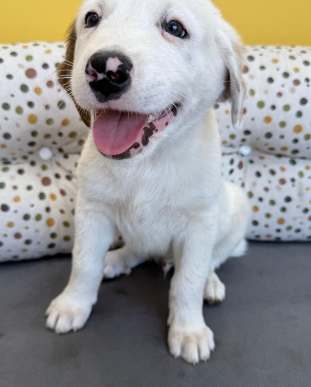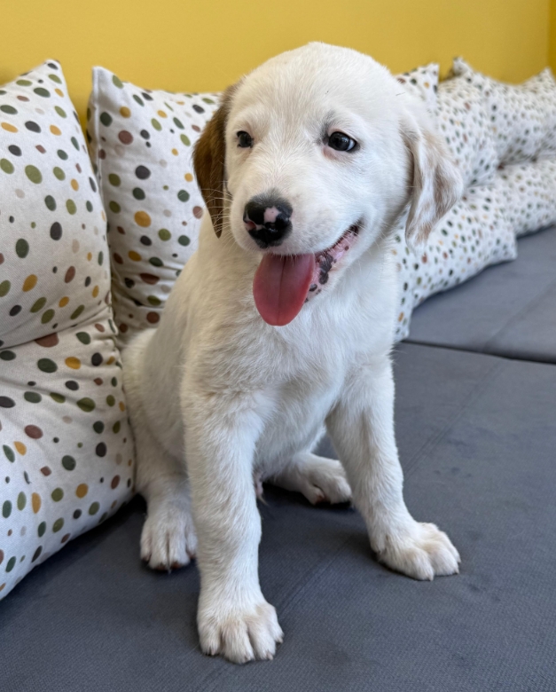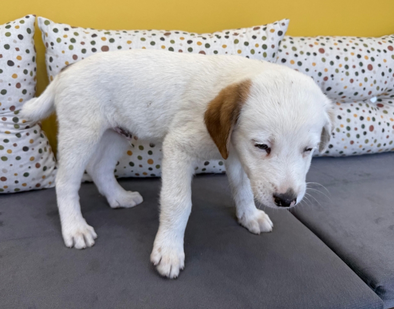 Ohne den niedlichen Jalla würde in der Tzatziki-Gang etwas fehlen. Welpentypisch tapsig, voller Neugierde und Vorfreude auf alle bevorstehenden Abenteuer bewegt sich der Hundebub durchs Leben. Sein Fell ist schneeweiß – bis auf die beiden Ohren. Während das rechte Ohr ganz braun ist, ist das linke Ohr voller süßer kleiner Sprenkel. Definitiv ein Anblick zum Verlieben! Was ihm jetzt aber fehlt ist eine Familie, die ihn durchs Leben begleitet und ihn mit liebevoll-konsequenter Erziehung an seinen neuen Alltag heranführt.