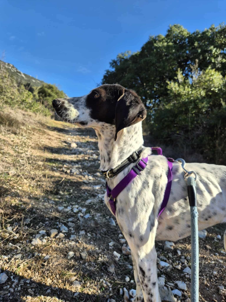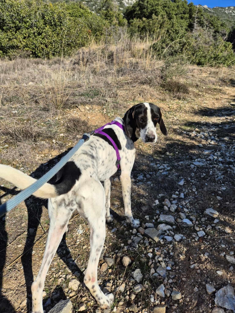 Leni wurde im vergangenen Sommer ganz allein in den Bergen Griechenlands gefunden. Die kleine Hündin war hungrig, verängstigt und hätte mit ihrer sanften Art und ihrer schmächtigen Statur kaum Überlebenschancen in der Wildnis gehabt. Umso glücklicher sind wir, dass das Finderpaar nicht wegsah und Leni nicht ihrem Schicksal überließ. Vermutlich ist sie verloren gegangen oder wurde ausgesetzt – Autos kannte sie jedenfalls, denn ohne Zögern sprang sie direkt in den Kofferraum ihrer Finder.
