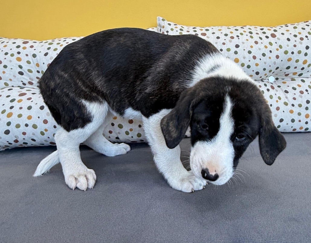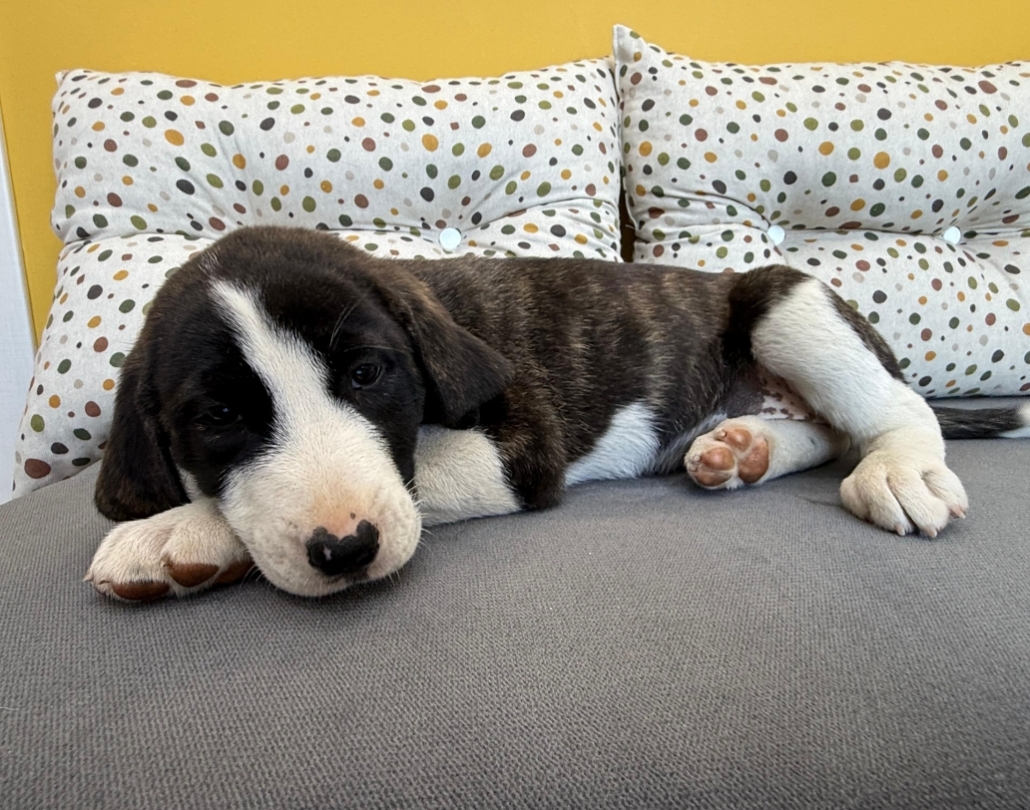 Ein Teil dieser Familie ist auch die hübsche Soula, die mit ihrer treuherzigen Ausstrahlung sofort alle verzaubert. Besonders auffällig ist der weiße Streifen, der sich markant über ihr Gesicht zieht. Man ahnt jetzt schon, dass sie einmal eine ganz besondere Schönheit werden wird. Bis dahin besticht sie durch ihre welpentypische Neugierde, Verspieltheit – und natürlich durch eine gute Portion Unfug, den ihre neuen Hundeeltern liebevoll in die richtigen Bahnen lenken dürfen.